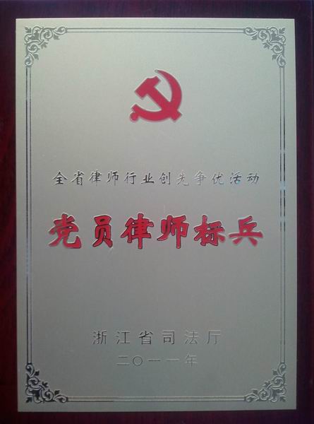近日,浙江省司法厅发文,授予我所潘炳灼律师为“全省律师行业创先争优活动党员律师标兵”的荣誉称号。
